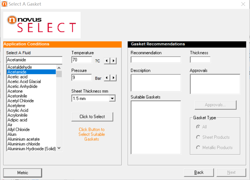 垫片和连接材料的快速、便捷的选型系统